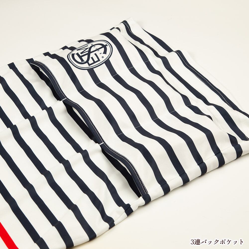 バックポケットはライド以外のシーンでも使い勝手のいいポケットなので前回の製品からさらに使いやすくするために脇のシーム(縫い目)を後ろへズラして3連バックポケットに変更しました。