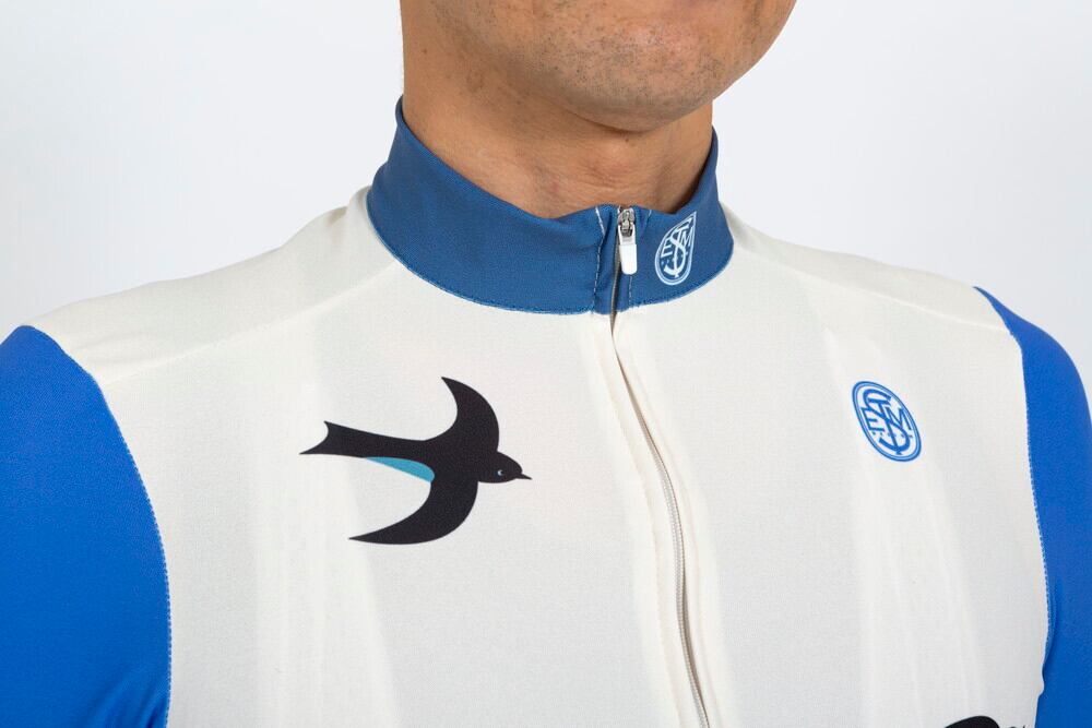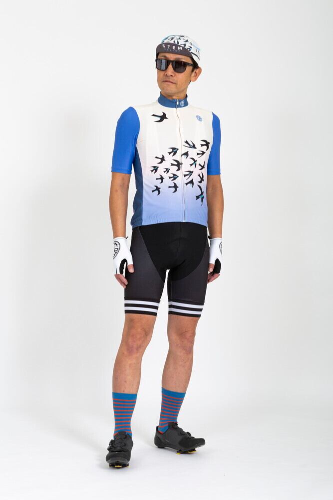 右胸には自由に駆け巡るサイクリストを例えたバードプリント